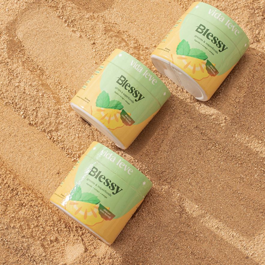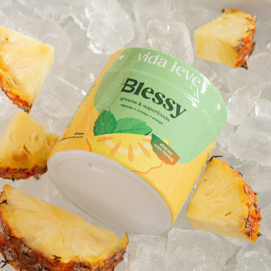 Feita com 36 ingredientes selecionados que o corpo da mulher ama, Blessy vai aliviar seu inchaço, regular sua digestão e te dar energia com muuuuito sabor. 💚