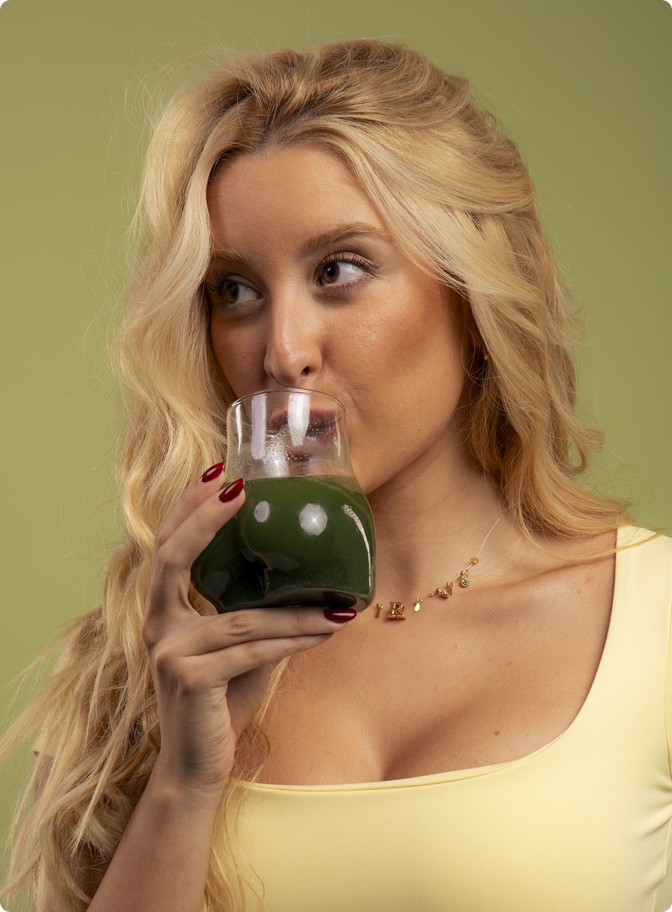 Maravilhoso! Sejamos honestos, suplemento e suco verde em regra tem um gosto muito sem graça. Fizemos a Blessy pra mudar isso pra sempre, você vai ficar ansiosa para tomar todos os dias!