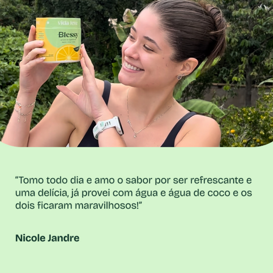 Depois que inclui a Blessynha na minha rotina fiquei mais disposta e mais leve, sinto que quando não tomo meu dia não é o mesmo