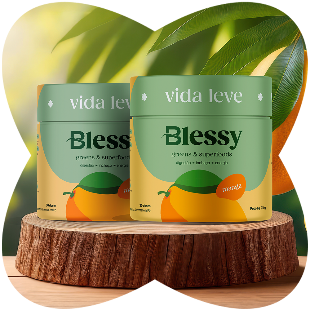 Sua dose diária de leveza. Feita com 23 ingredientes que seu corpo ama, Blessy vai aliviar seu inchaço, regular sua digestão e te dar energia com muuuuito sabor.
