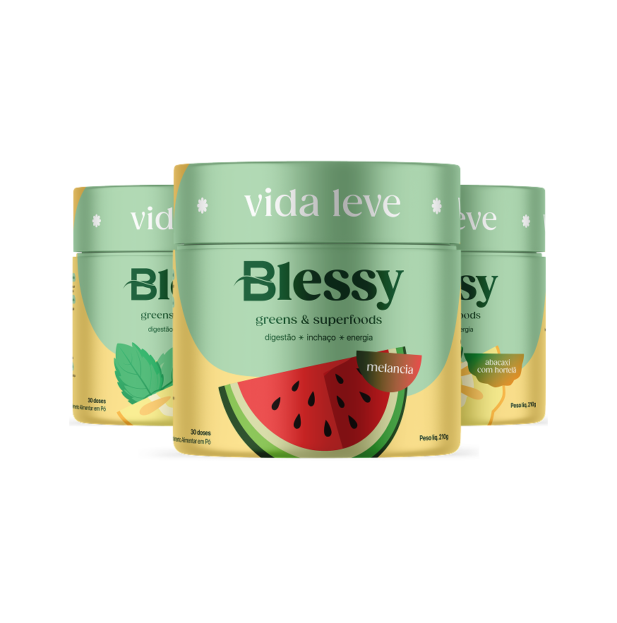 Sua dose diária de leveza. Feita com 23 ingredientes que seu corpo ama, Blessy vai aliviar seu inchaço, regular sua digestão e te dar energia com muuuuito sabor.